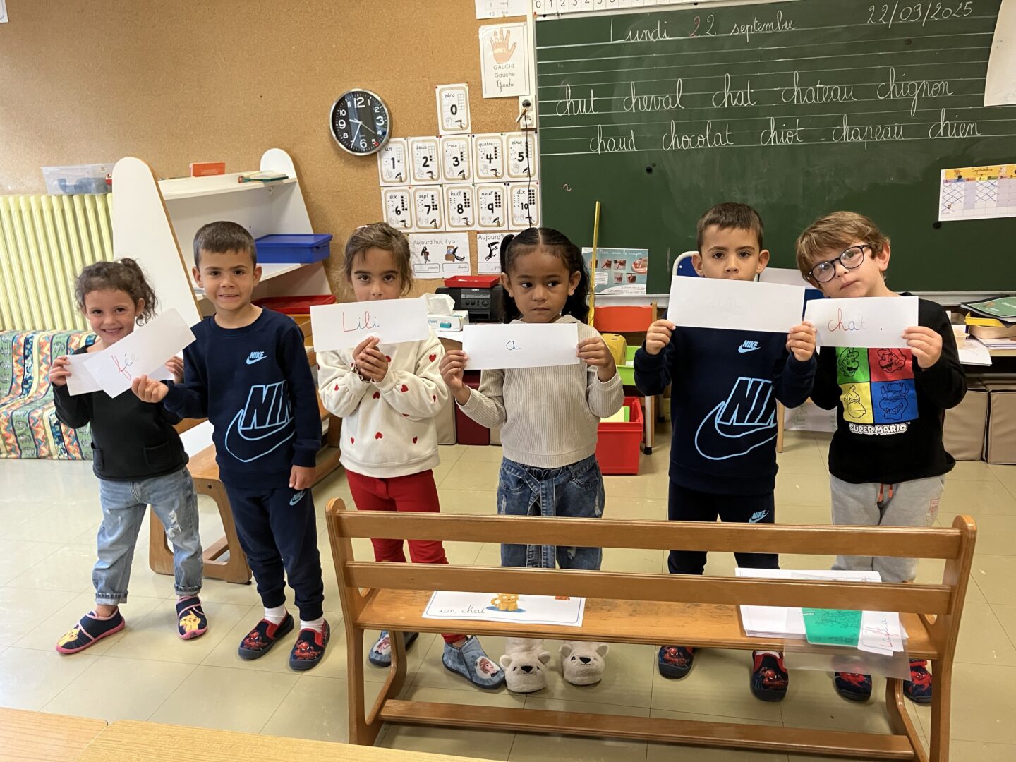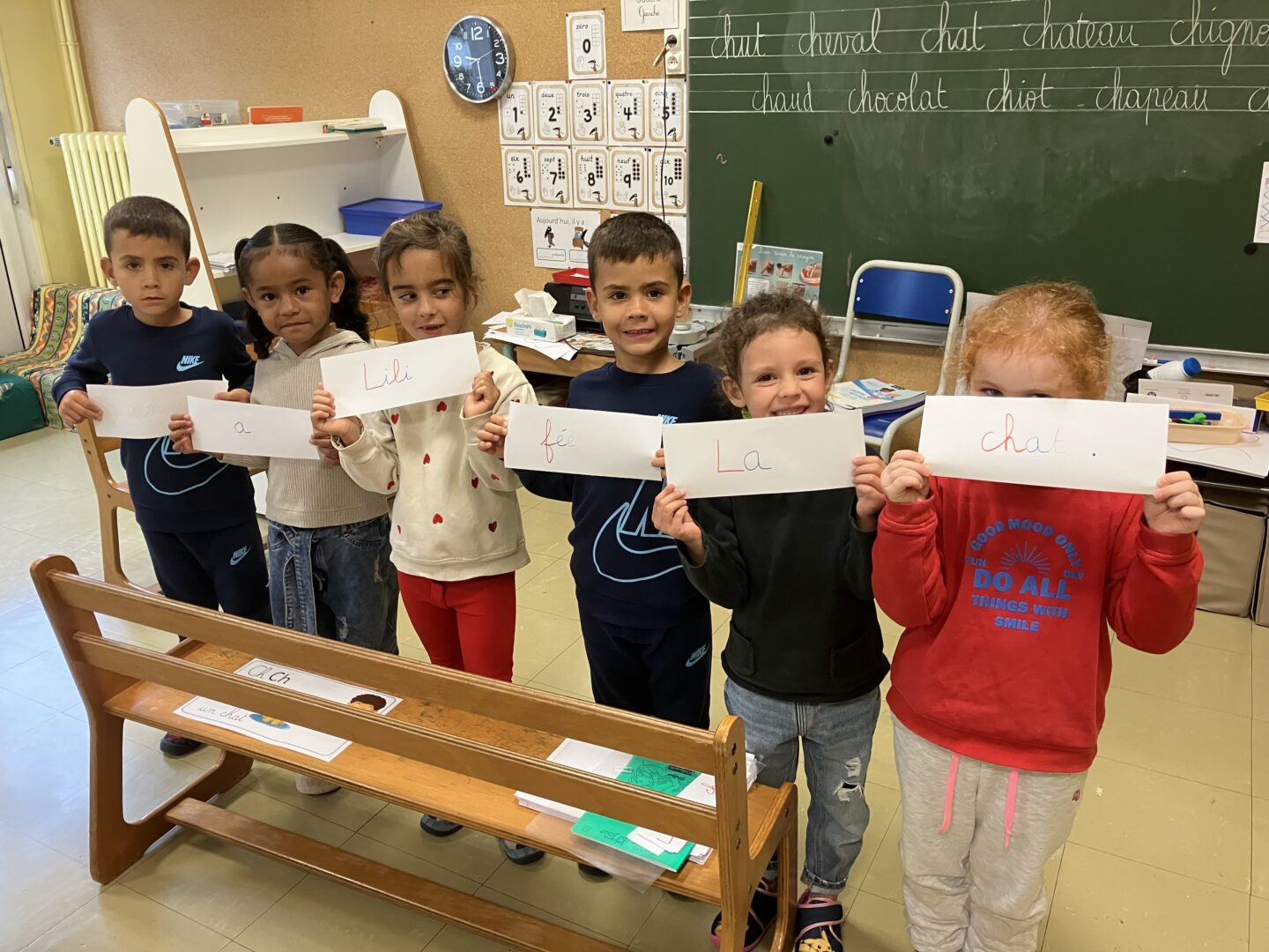 Pour prendre conscience de la notion de phrase, les élèves devaient remettre dans l’ordre des mots. Ils ont compris la notion de point et de sens.