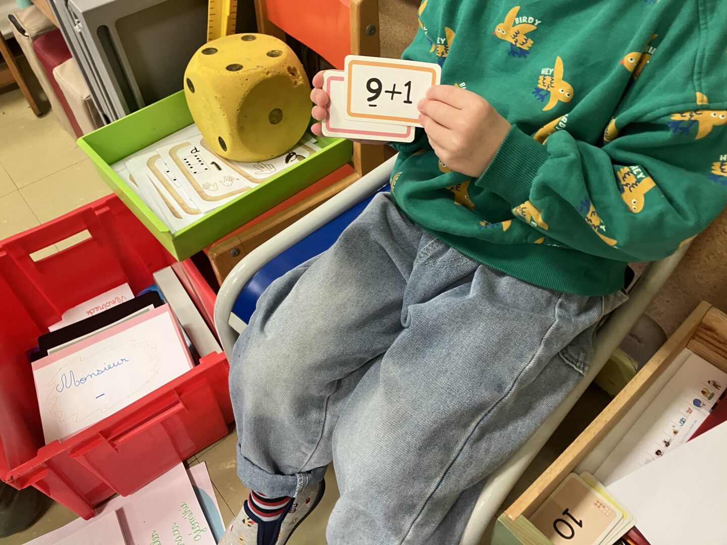 J’exige de vos enfants de dire la totalité de l’équation : « 5 + 1 = 6 » « cinq plus un égal six »