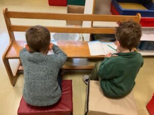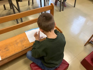 Cette légère modification du déroulé de la journée me permet d’être en tout petit groupe avec vos enfants (un groupe de GS à 7, et les deux groupes de CP à 5) à hauteur de 1h par groupe : cela représente la moitié du temps ! Les élèves ont l’air d’apprécié.