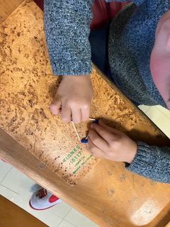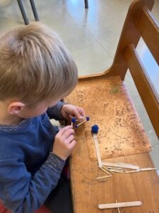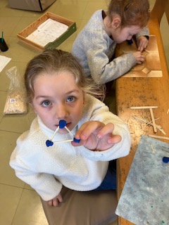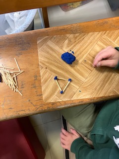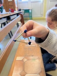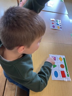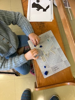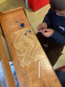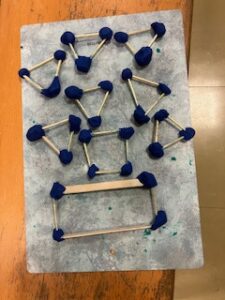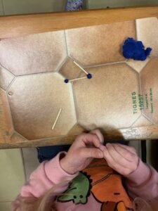 Nous avons réalisé un loto des formes, construits les figures avec pâte à modeler et batonnets.