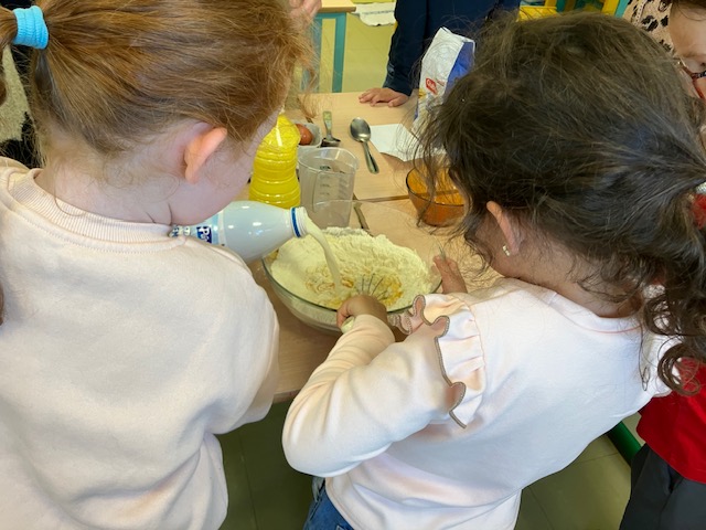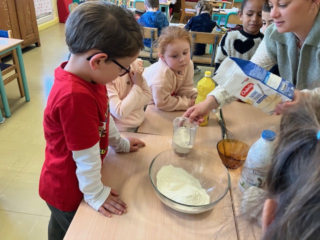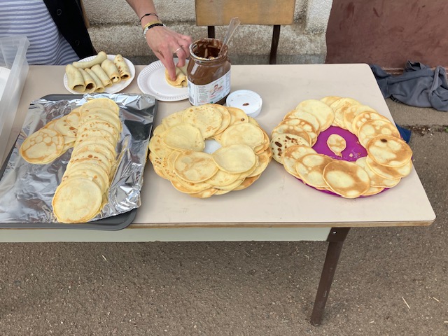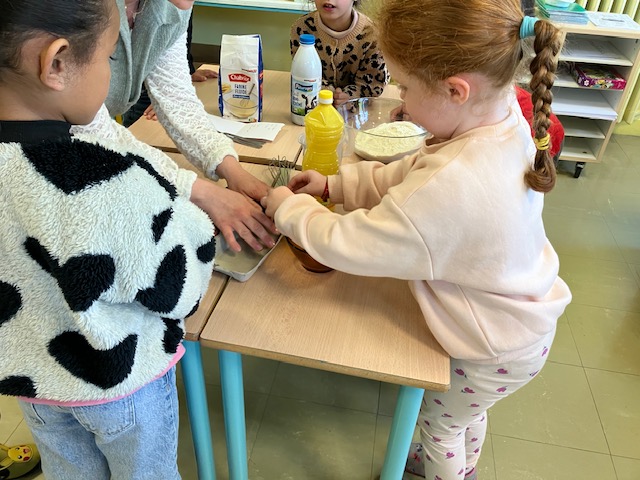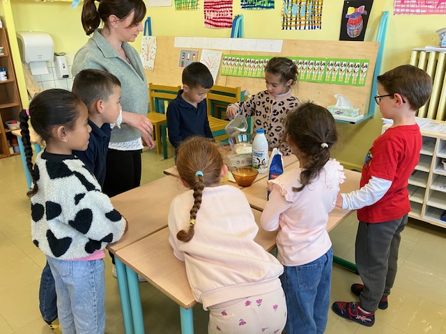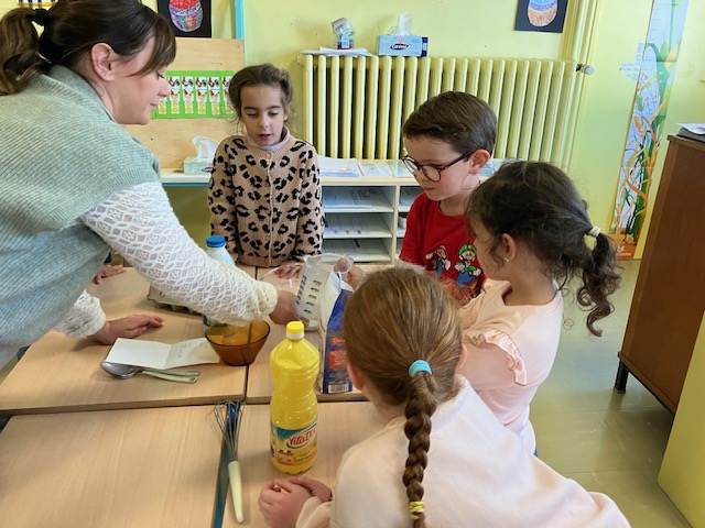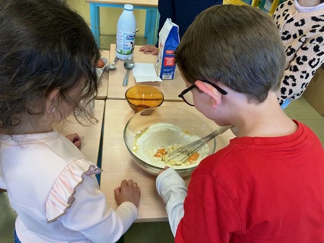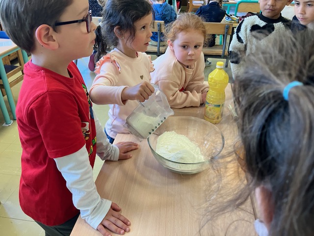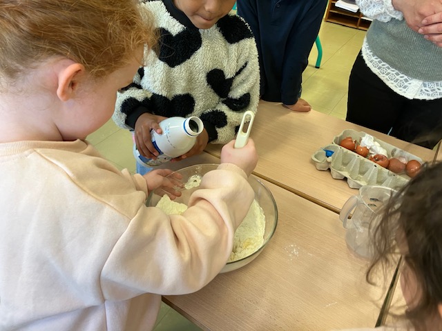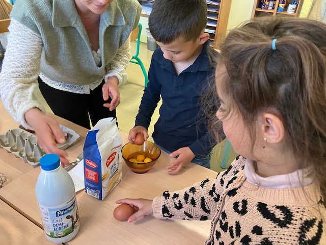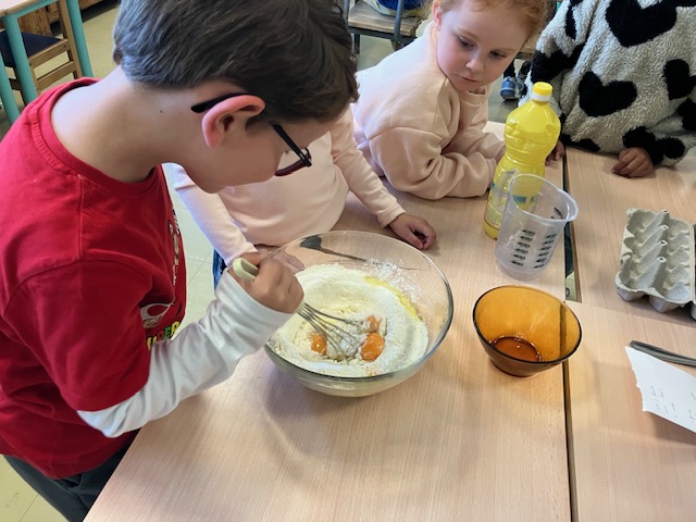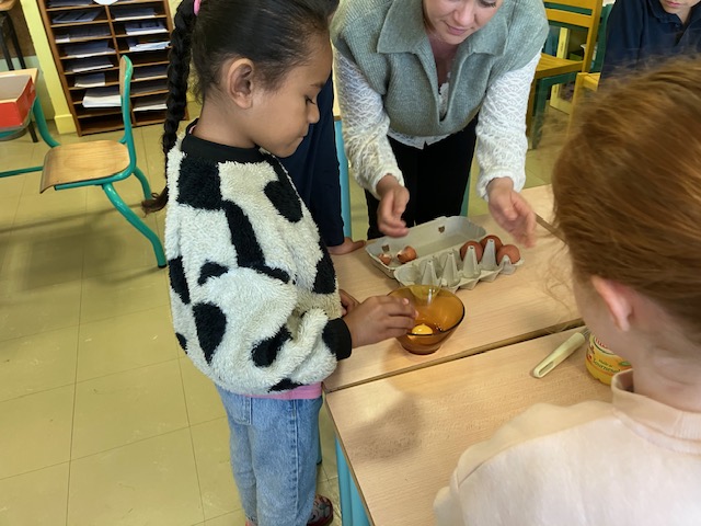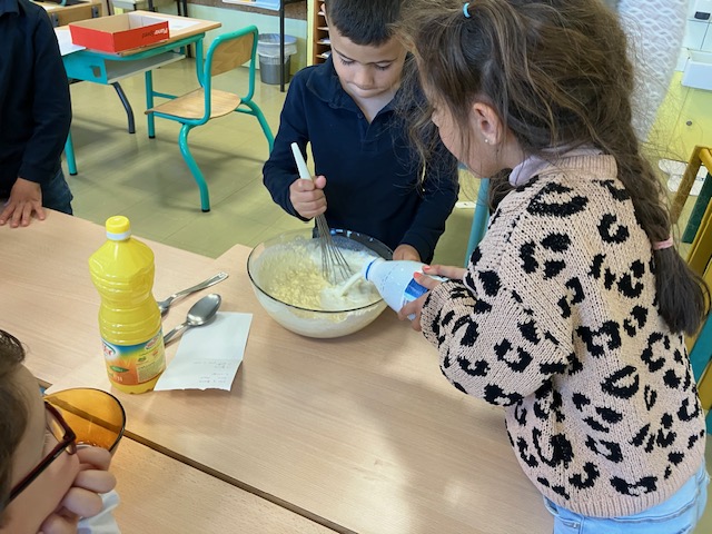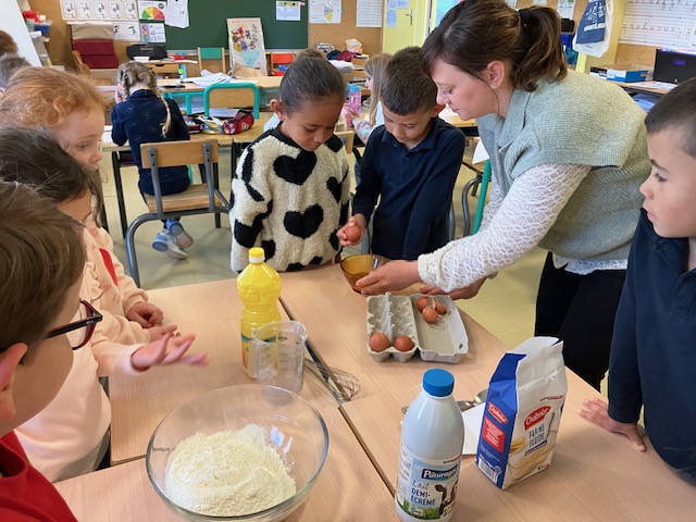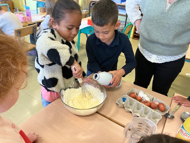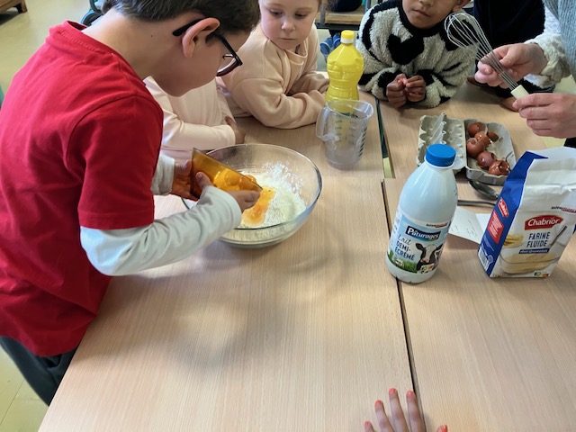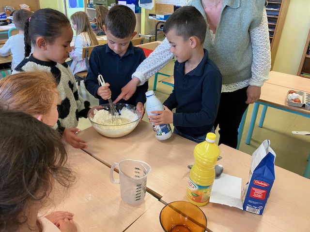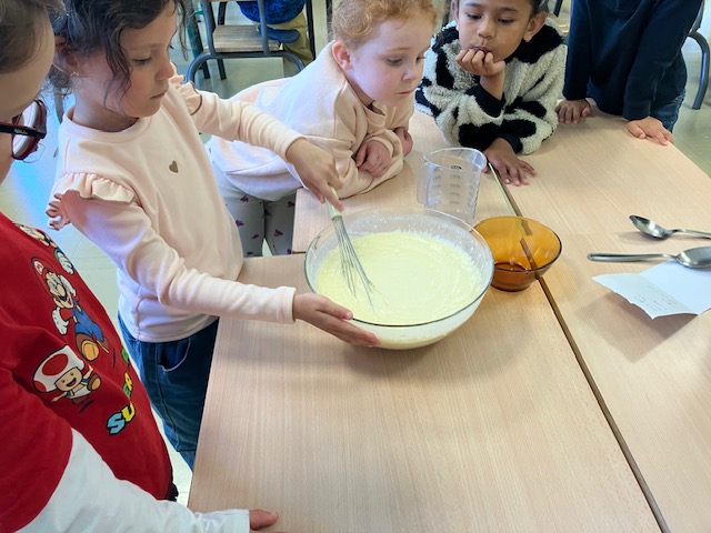 La pâte à crèpes a été préparée le matin par les élèves de GS et de CE1.