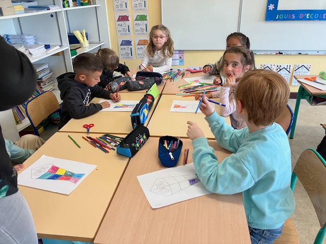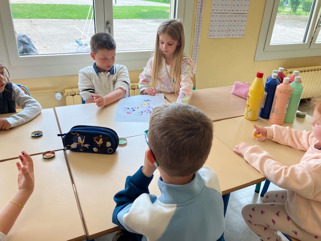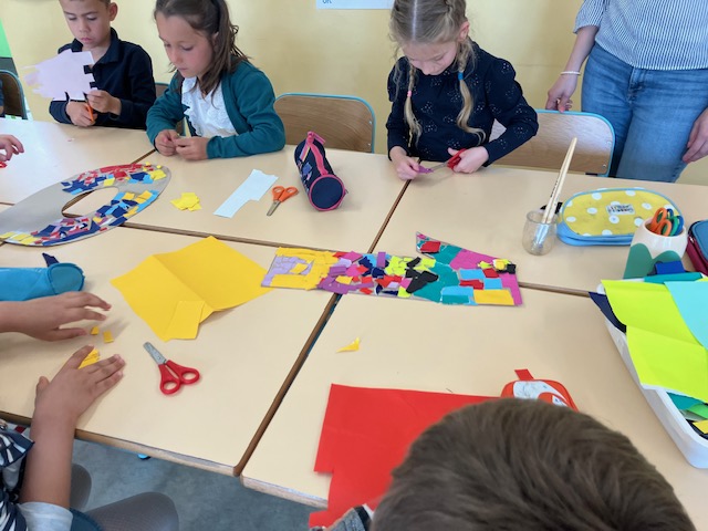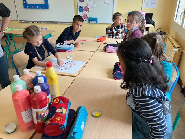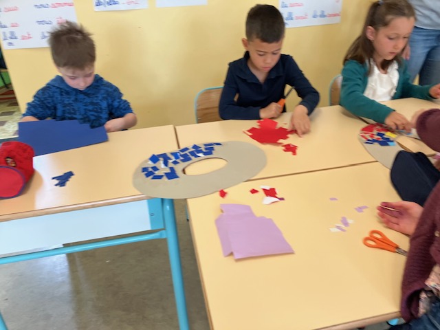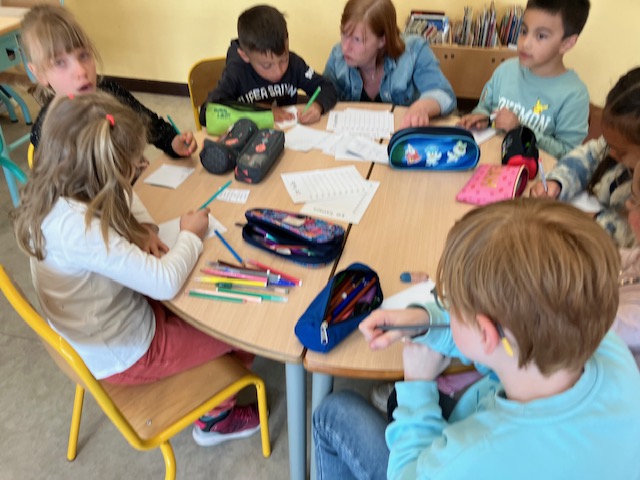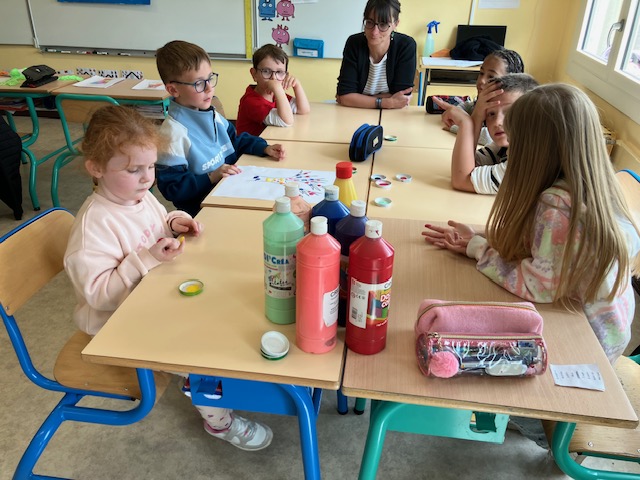 Le jour de la fête, les élèves étaient répartis en 5 groupes mélangés entre les deux classes de GS/CP et de CP/CE1. Ils ont pu réaliser les 5 ateliers proposés, 15 à 20 minutes par atelier.