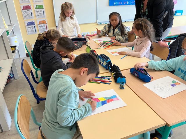 - Dans chaque case, les élèves réalisent un graphisme différent (10 motifs uniques).