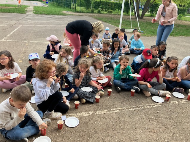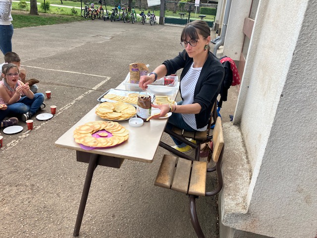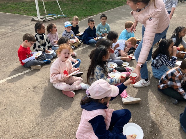 A l’issu des ateliers et après la récréation, a lieu un goûter.